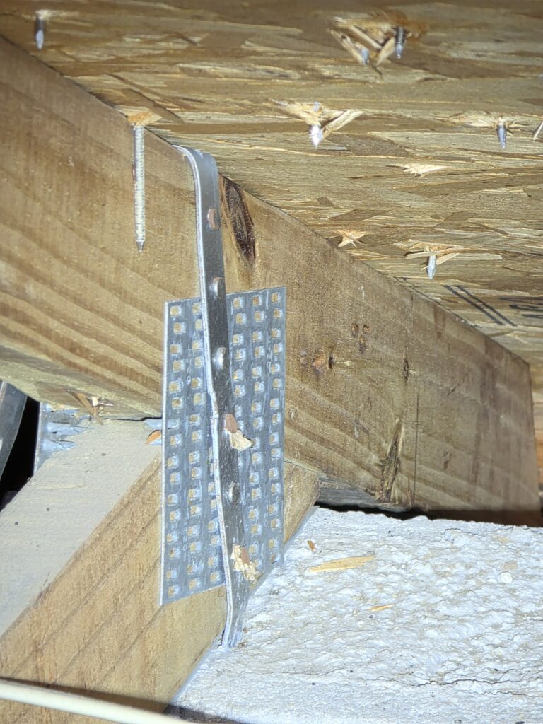 We verify how the roof sheathing is fastened (nails vs. staples, nail size, and spacing) – all affect how securely the roof is attached. - Roof-to-Wall Connections
